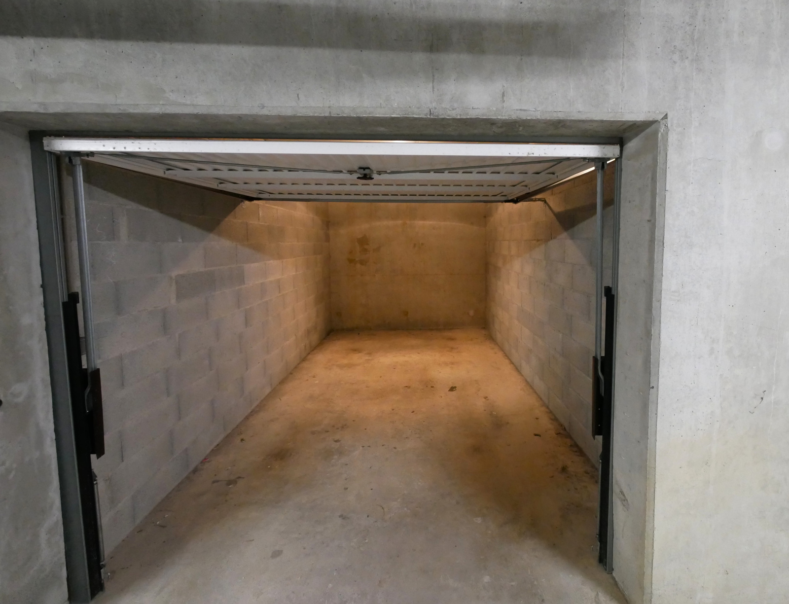 Dimensions : 3.30 x 4.40 - Hauteur maximale : 1.90 - Porte basculante manuelle - Garage équipé d'une lumière.