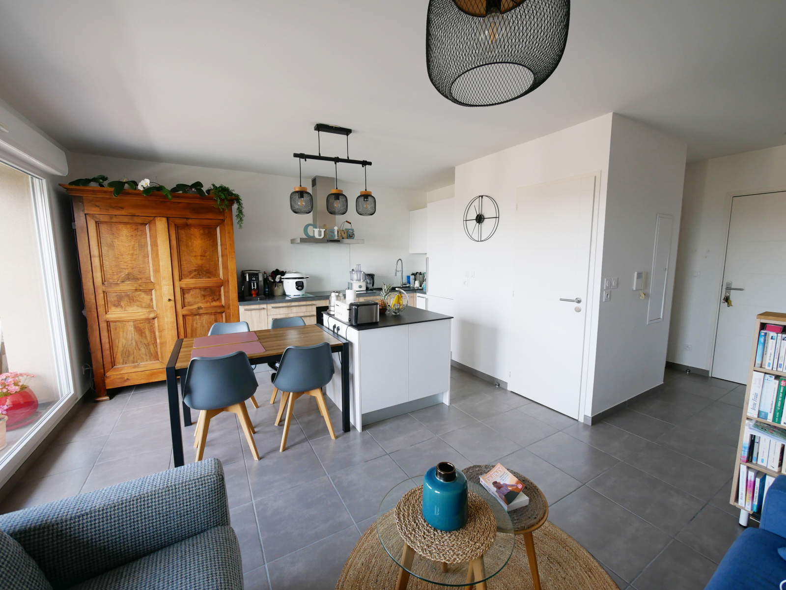 L'appartement offre une belle surface avec près de 55 mètres carrés et dispose d'une terrasse de près de 12 mètres carrés avec vue sur le clocher du village. Il se compose d'une belle pièce de vie composée d'un coin salon et d'une cuisine, d'une chambre avec placards, d'une salle de bain et d'un wc indépendant. Construction répondant aux exigences de la RT2012. Idéal pour un primo-accédant ou pour investissement.