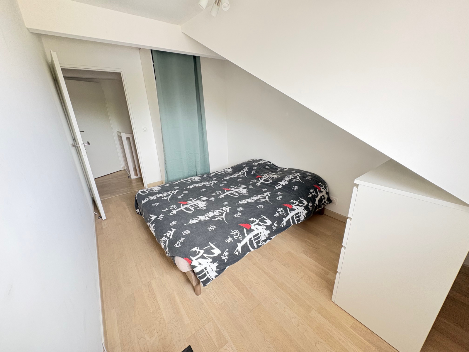 A l'étage : deux chambres, une salle de bains et des combles offrant des espaces de rangement supplémentaires