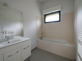 L'appartement offre de beaux volumes avec ses 59.63 mètres carrés de surface habitable, et tout le confort moderne lié à cette construction récente. Il se décompose sur deux niveaux depuis un jardin privatif, comme suit : une grande pièce de vie avec son coin cuisine, un wc avec lave-main et une buanderie. A l'étage, deux chambres, une salle de bain et un wc indépendant complètent les espaces du logement.