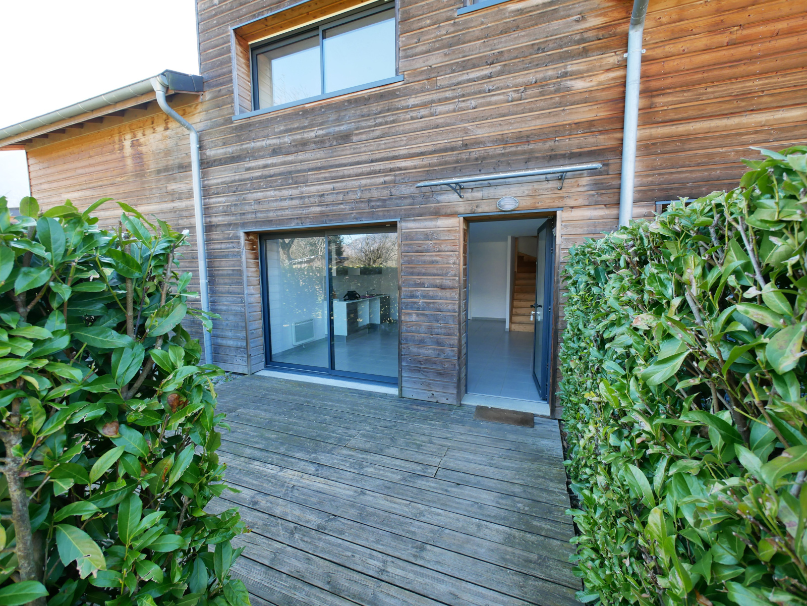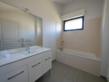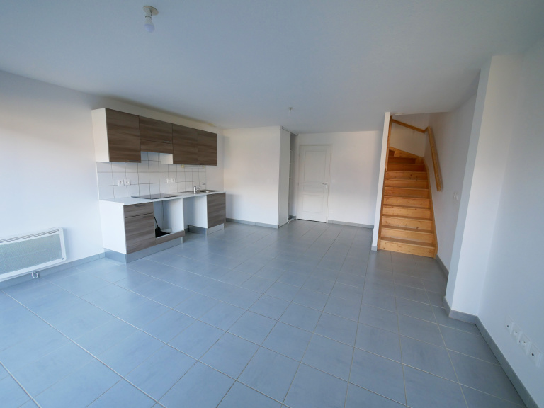L'appartement offre de beaux volumes avec ses 59.30 mètres carrés de surface habitable, est lumineux, et tout le confort moderne lié à cette construction récente. Il se décompose sur deux niveaux depuis un petit jardin privatif avec terrasse, comme suit : une grande pièce de vie avec son coin cuisine, un wc avec lave-main et une buanderie. A l'étage, deux chambres, une salle de bain et un wc indépendant complètent les espaces du logement.